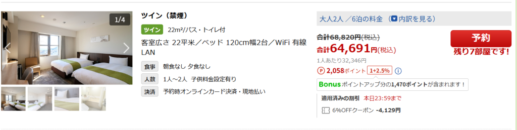 上記比較によると、通常比較よりも「楽パック」を活用したほうが約7%OFFで予約できることがわかりました。上記比較はあくまでサンプル比較ではありますが、「楽パック」を活用したほうがお得なのは確かなようです。