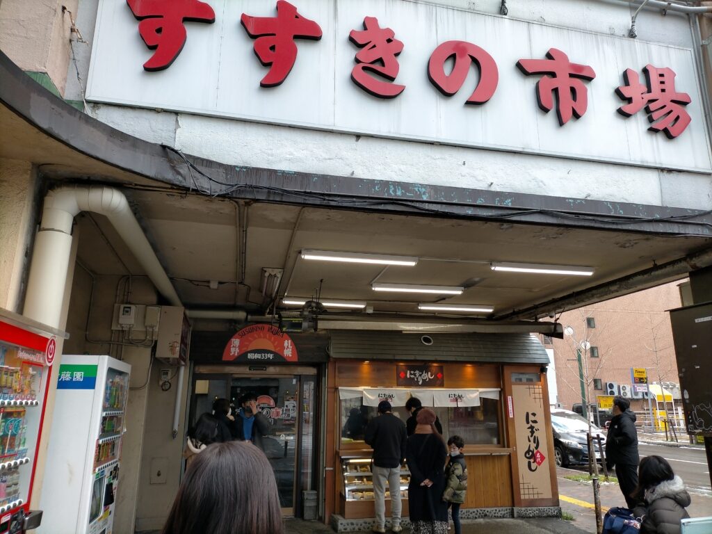 朝食は、すすきの市場の老舗おにぎり専門店「にぎりめし」からスタート。