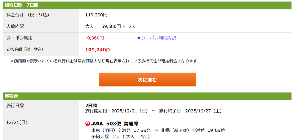 じっくりプランを練った上で、ダイナミックパッケージでプランを固めてしまうのがコストを抑えるおすすめな手法で、実際に北海道旅行含め、私も長旅は通常料金と比較の上で、ダイナミックパッケージを利用しています。