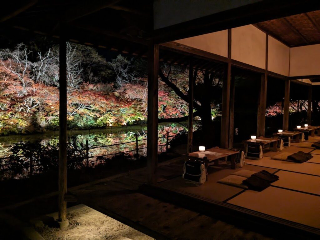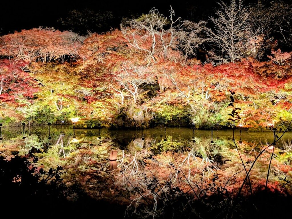 11月中旬以降、紅葉シーズンはライトアップされた木々が水面に反射してとても美しいです。