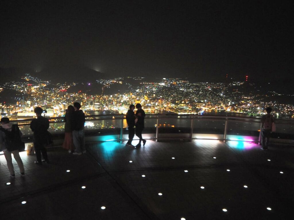 夕方以降は稲佐山の夜景へ。ロープウェイやバスで展望台に上がり、日没前後の時間帯を狙うと、夕焼けから夜景への移り変わりを一度に楽しめます。長崎の稲佐山の夜景は「世界新三大夜景」にも選ばれている世界屈指の夜景スポットで、個人的にもおすすめのスポットです。
