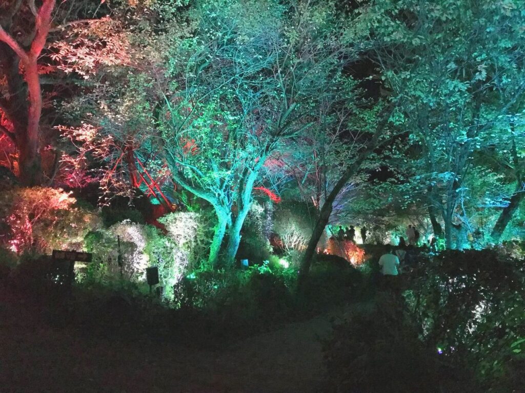 7月~11月初旬は、有名なチームラボとコラボして山全体にプロジェクションマッピングが行われています。