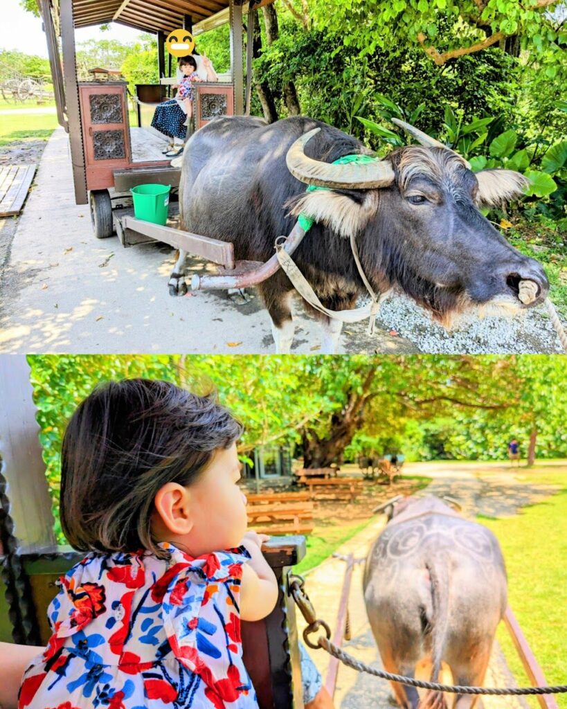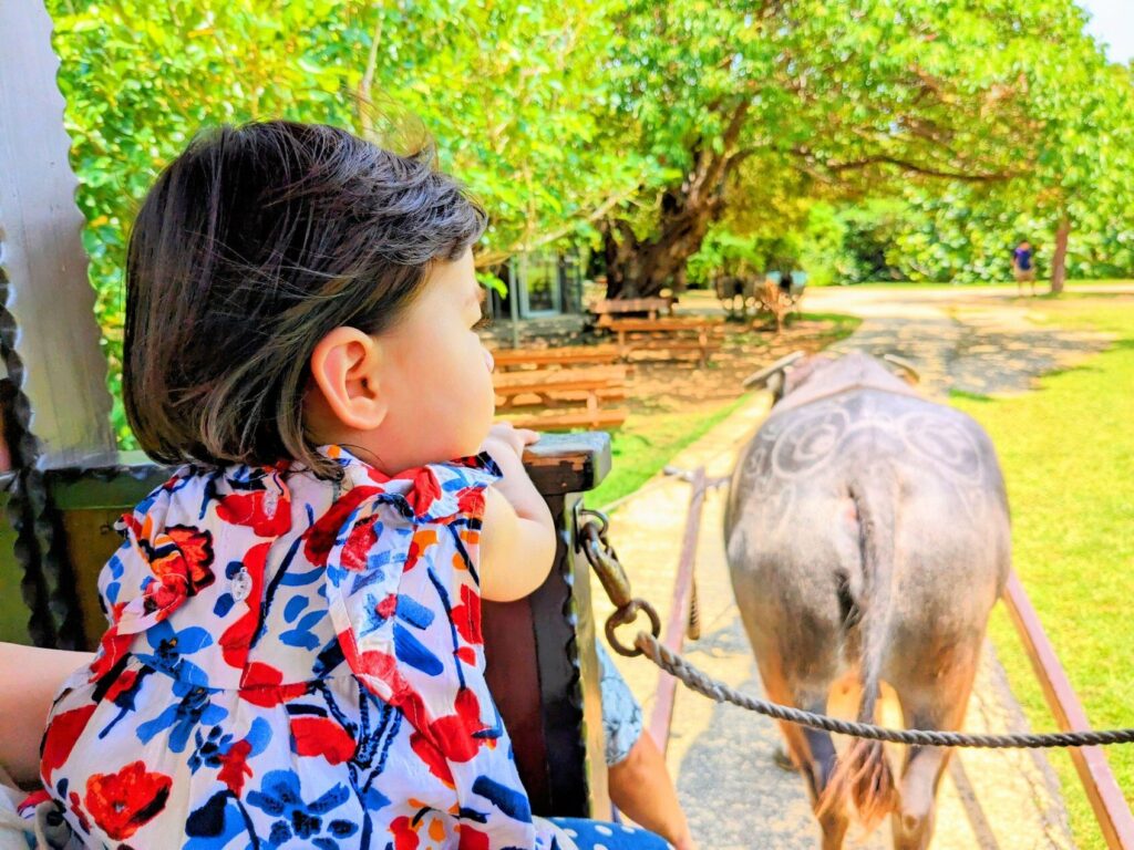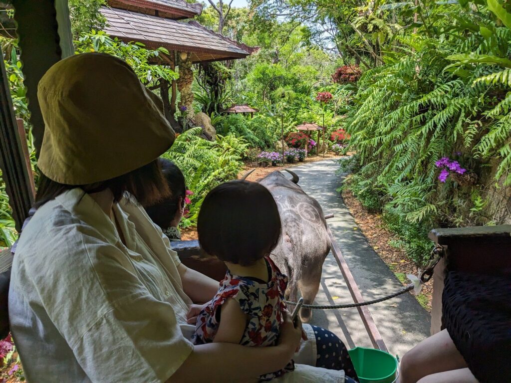 午後は中部エリアへ移動し、「ビオスの丘」で水牛車や遊覧船、自然の中の遊具などを楽しみます。