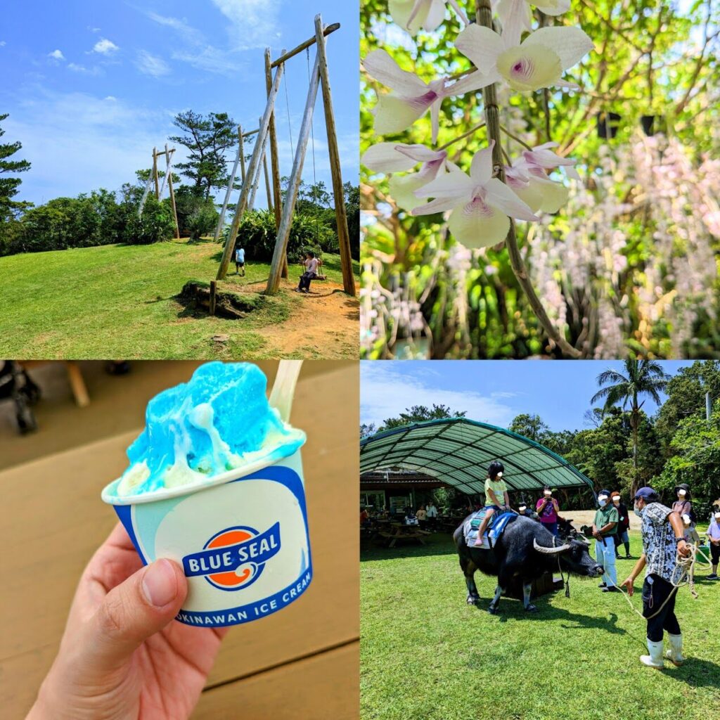 水牛車や水上ボートに乗っての園内探検や、大きなブランコに乗って遊んだり、動物に触れ合い体験をしたりと、子連れ家族におすすめしたいスポット。 - 美らヤシパークオキナワ・東南植物楽園