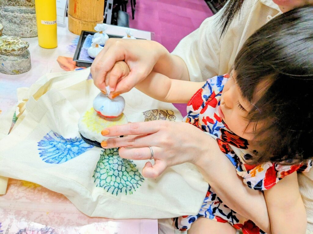 ここではサンゴを使った染め体験ができ、Tシャツやトートバッグなど、日常使いしやすいアイテムに自分だけの柄を染めることができます。作業自体は比較的シンプルなので、小学生以上であれば十分に楽しめる内容です。