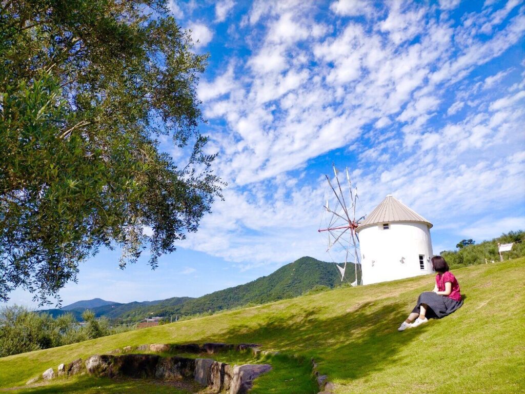 小豆島では、ギリシャ風の風車がシンボルの「小豆島オリーブ公園」がおすすめです。