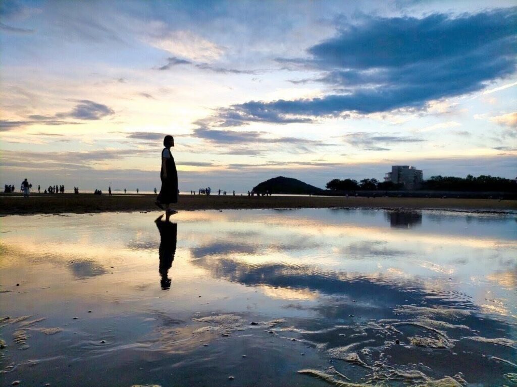 ここは潮が引いた時の干潟に水が残り、それが鏡のように空を映し出すことから「日本のウユニ塩湖」と呼ばれています。特に、干潮と日の入りが重なる時間帯の美しさは言葉になりません。