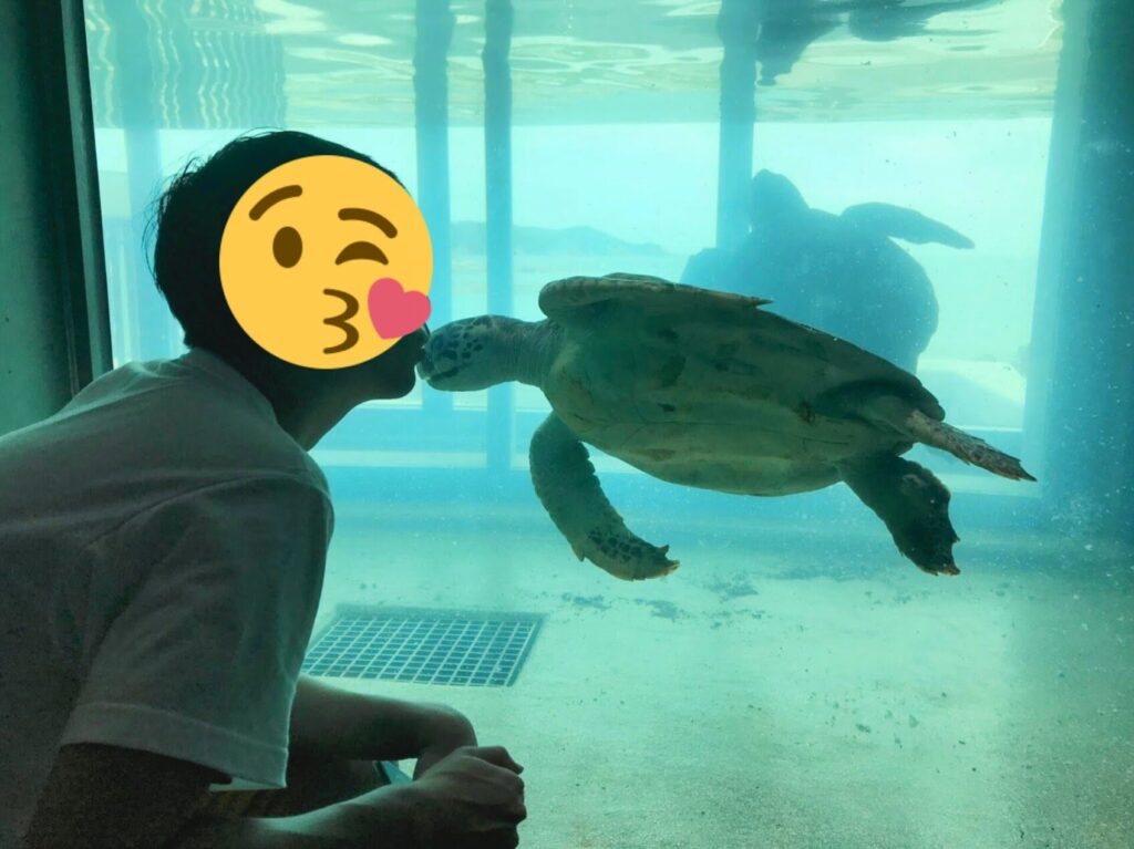 竜串湾を背景に泳ぐウミガメや、愛らしいユーラシアカワウソなどが人気で、コンパクトな水族館でありながら、没入感のある自然と一体となった感覚になれる水族館で、妻もとてもお気に入りの水族館です。