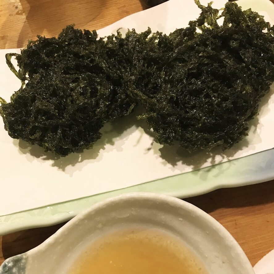 この日の夕食は、カツオのたたきや、青さのりの天ぷらをぜひ試してみてください。個人的に青さのりの天ぷらは、四国旅で絶対に外せないグルメの1つです。土佐清水市内の「味劇場 ちか」というお店の海鮮料理はどれも絶品でした。