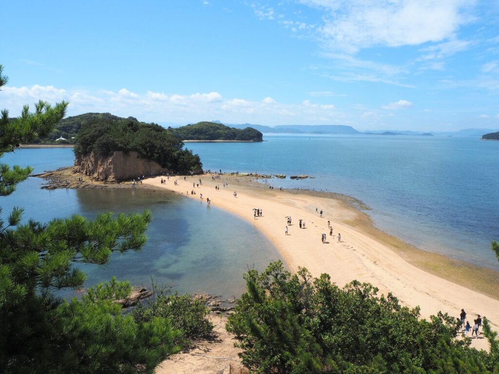 最後に、小豆島で外せないのは、1日に2回現れる「エンジェルロード」です。二人で渡れば、より絆が深まると言われています。