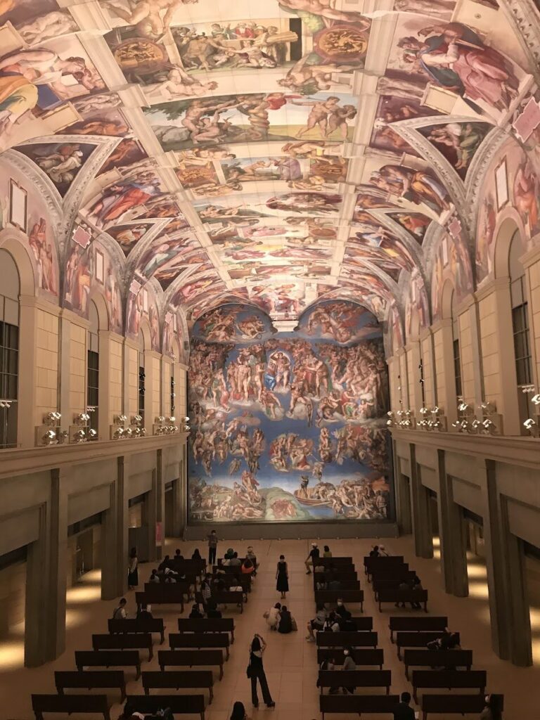 バチカンのシスティーナ・礼拝堂を完全に再現した空間や、モネの「大睡蓮」を囲む屋外庭園など、まるで一日で世界中を旅しているかのような没入感を味わえます。